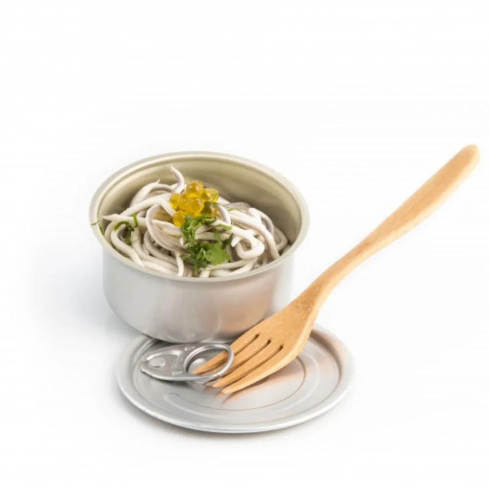 Traditional can with a separate easy-open lid, ideal for presenting fresh food servings as they were canned food. Manufactured in high-quality aluminum under food legislation, it is resistant to vinegar or acid sauces. Round shape with a diameter of 8 cm.