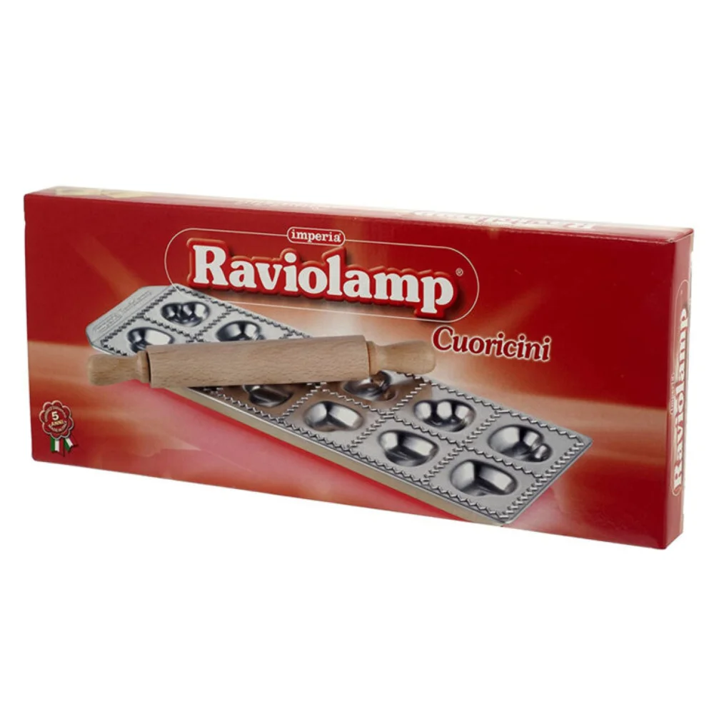 Enjoy the satisfaction of making fresh Ravioli right in the comfort of your own home with Imperia Raviolamp 12-Heart Homemade Ravioli Mold. This unique ravioli tool, complete with rolling pin, will put a fresh, healthy meal on the dinner table whenever you choose!
