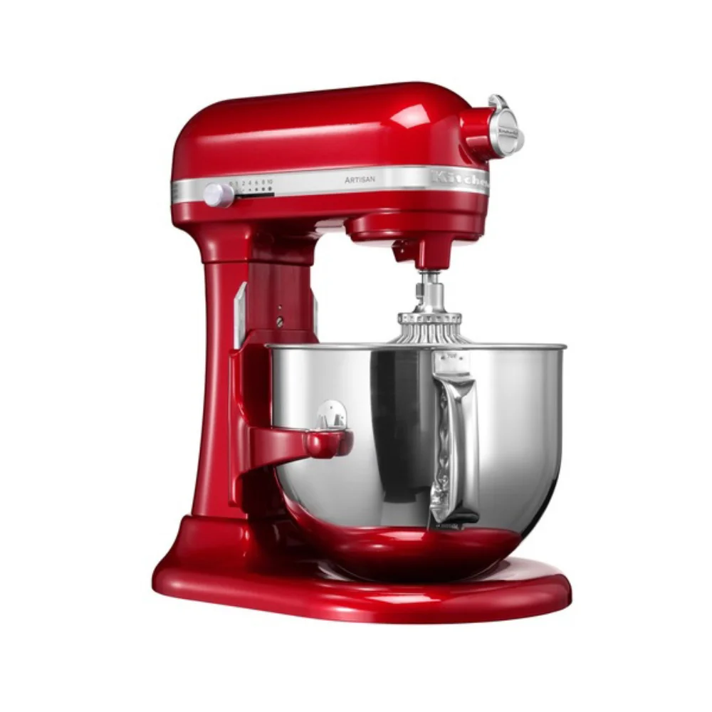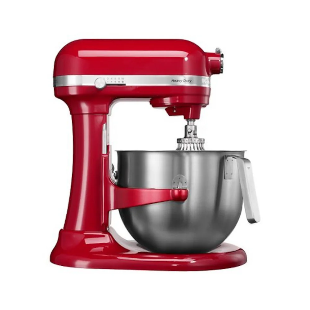 This Kitchen Aid Artisan Heavy duty 5KSM7591 Stand Mixer is a top of the line product. It comes with many great features such as 10-speed solid-state control – Direct-drive transmission, Tilt head design, Includes coated flat beater, wire whip, coated dough hook, and 1-piece pouring shield, 6.9L QT Stainless Steel Bowl with comfortable handle.