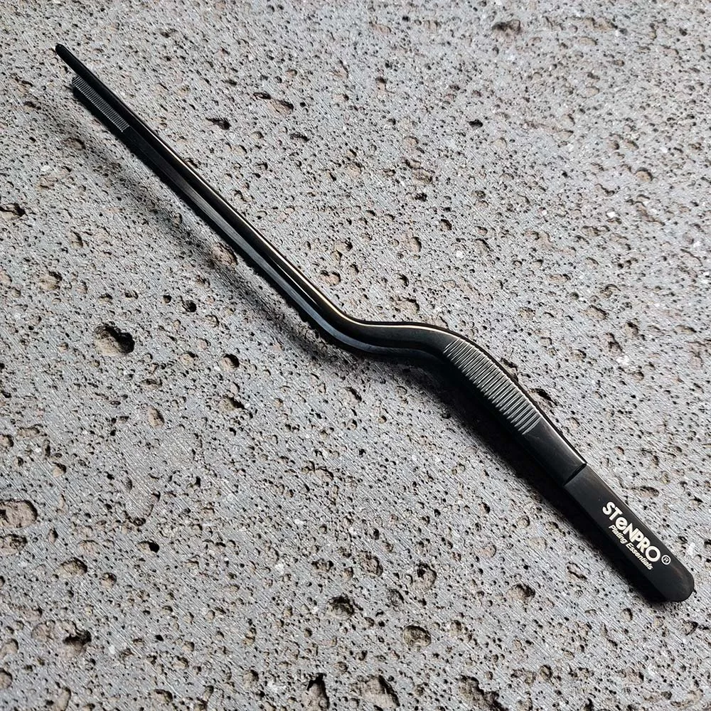 Ultra Fine Tip, Machined Finger Grips; Grooved Tips, The inside of the tongs tips feature a micro-serration for optimal product grip.