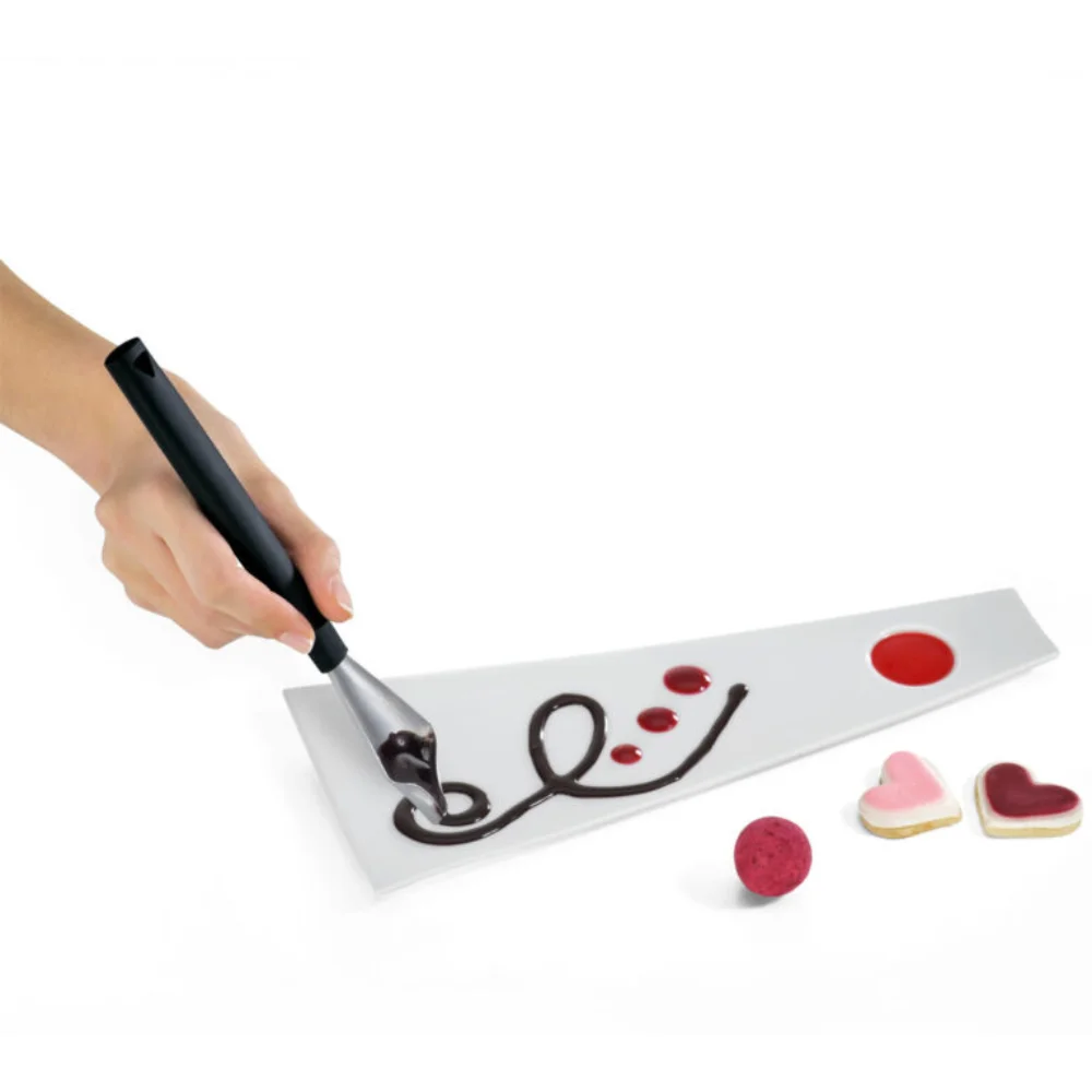 Zigzag lines, spirals, dots flowing into each other or free forms from sauces, creams and purees can be drawn creatively and artfully on the plate with the Art Spoon decorating spoon.