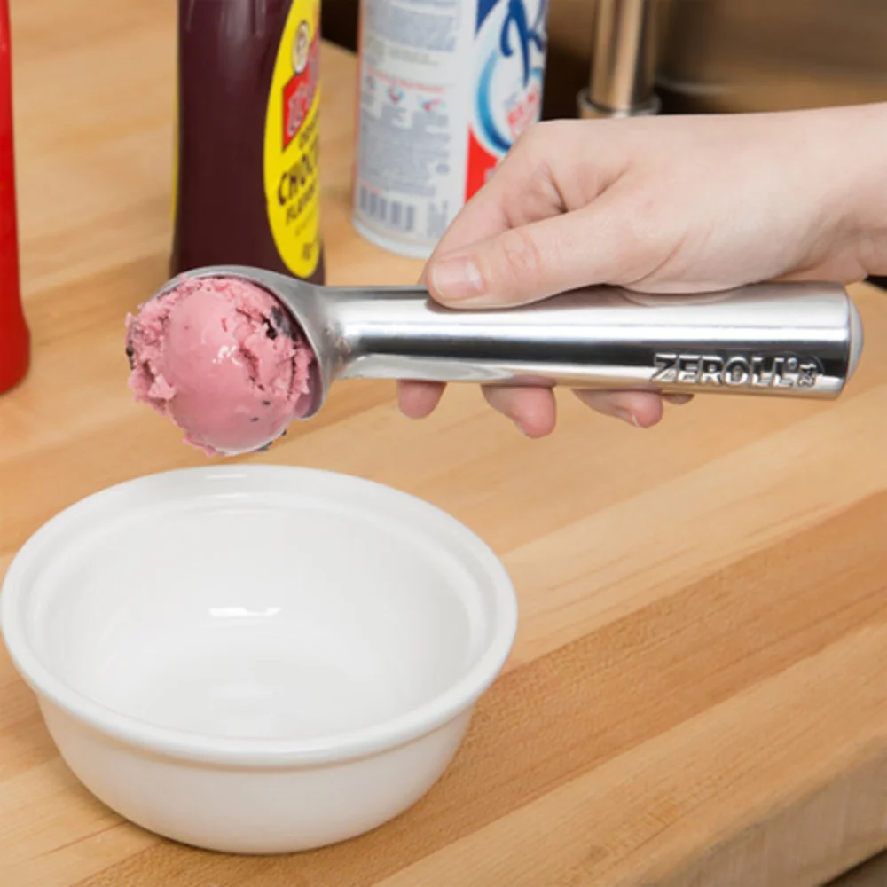 The scoop of choice in homes and ice cream parlors since 1935, this handy tool carves out plump round scoops. Zeroll scoops create a bigger looking portion by eliminating compression, which gives you up to 20% more scoops of ice cream per gallon. Its unique handle draws on the natural warmth of your hand to ease molding the frozen treats.